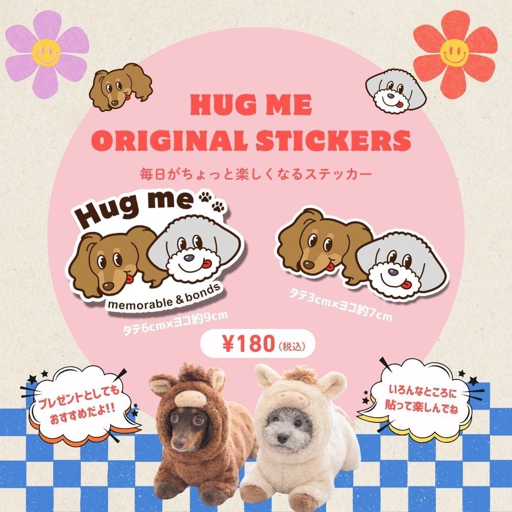 Hug meの番犬ミーコとボーのオリジナルステッカー