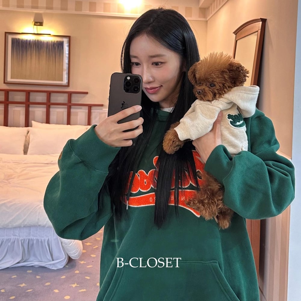 【送料無料】 レギュラーサイズ B-CLOSET ブランドロゴ入り フード付き トレーナー スウェット リンクコーデ 韓国 ブランド 服 かわいい おしゃれ プレゼント ギフト ラッピング