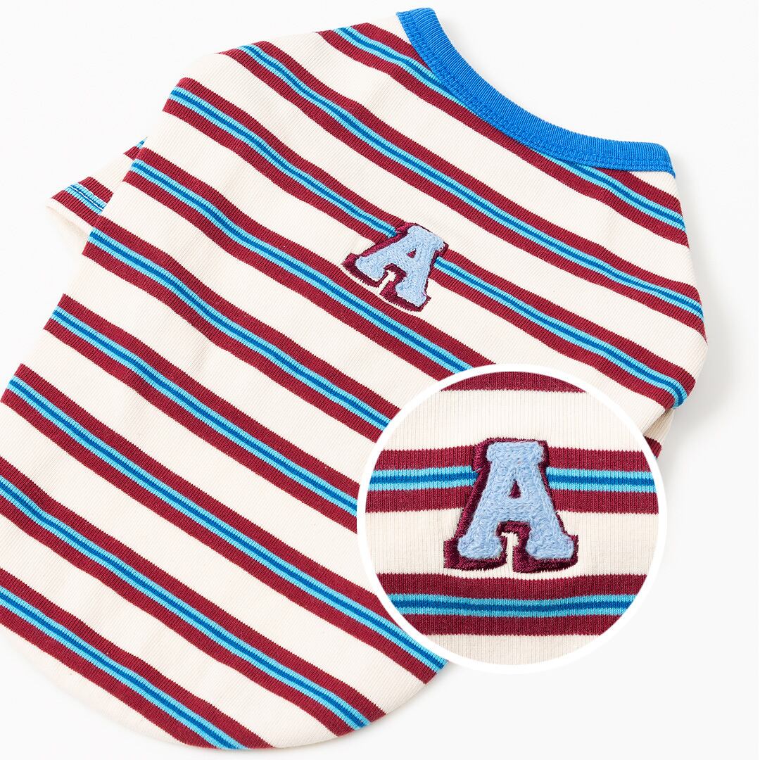 andblank Aステッチストライプ半袖 A Stitch Stripe Short Sleeve Ivory ドッグウェア アンドブランク 韓国 ブランド ペット 服 かわいい おしゃれ プレゼント ギフト ラッピング