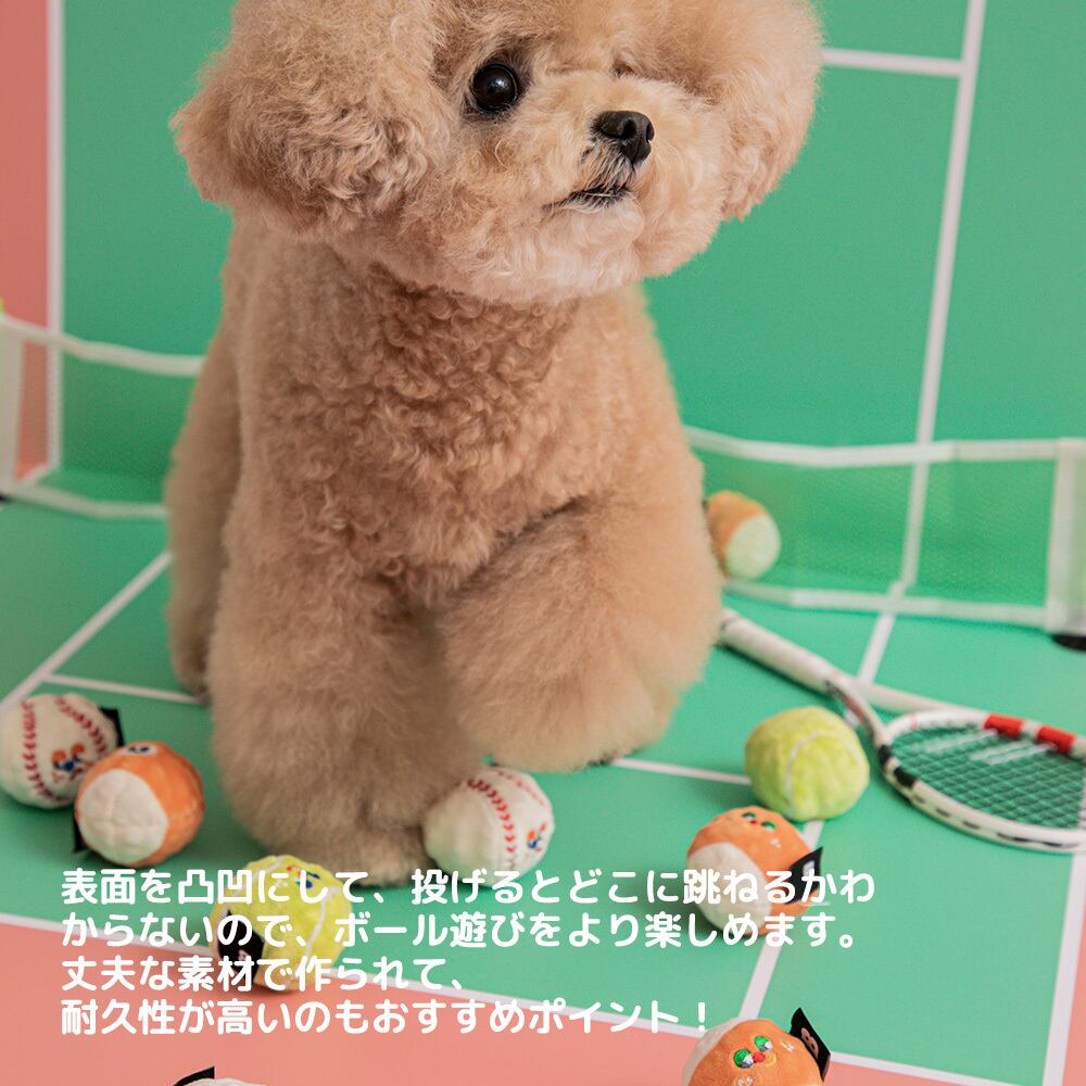 わんちゃんが夢中になる、遊び心あふれる「ミニスポーツボールおもちゃセット」3種類のかわいいデザインがセットになっており、プレゼントにもぴったり!韓国発のトレンドブランド「BITE ME」らしい、洗練されたデザイン。噛み心地にこだわったペットに優しい素材で、安心して遊べます。小型犬や中型犬にぴったりのミニサイズで、投げて遊んだり噛んで楽しむことができます。
